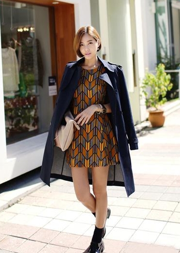 连衣裙搭配风衣外套是最常见的一种搭配,但是很多矮胖女生都无法接受,觉得这样穿会显得比较横面发展。其实是你没抓住重点,把比例调整到了最佳状态,就不会有人觉得你矮胖。建议连衣裙的长度选择在大腿中间的位置是最佳,然后利用裸色高跟鞋或者短靴很直接的把腿部比例拉长。