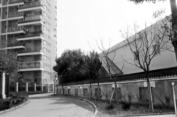 这个婚庆场地和一号楼之间,仅隔着一条弯曲的小道。小道有七八米宽,附近还有环翠名苑的2号楼和3号楼。从稍远处看过去,凤凰山庄游泳池的招牌还挂着,而游泳池已经被改造。