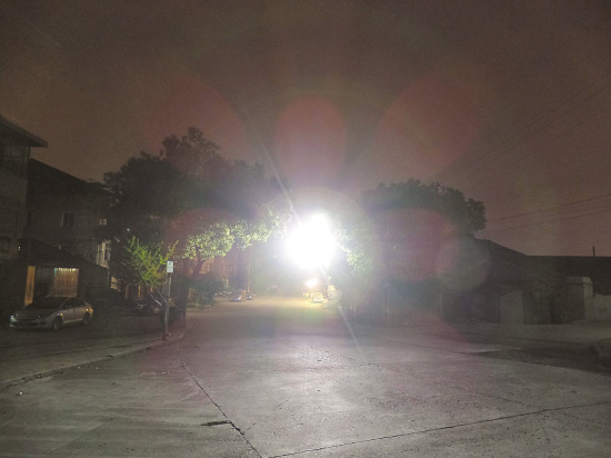 “从张洋路快开到东方花园时,有段上坡的路,因为头上一盏灯照得明晃晃,眼前一片白,灯背后就一片黑,什么都看不见了。”王女士说,“就像对面车子开着远光氙气灯一样扎眼。”