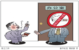 室内公共场所禁烟难,办公室禁烟则更难。“我们领导不但在自己办公室里吸烟,在会议室、餐桌上都公然吸烟。大家心里不快,但谁敢说呀?”北京一家机关单位的贾女士告诉记者。
