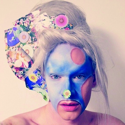 有荒诞的加拿大化妆师男扮女装,用化妆品以及改装发套自拍怪诞照。