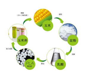 公司成立不久,王捷就开始寻找可以代替塑料的新型材料。一次偶然的机会,王捷在网上看到了PLA(聚乳酸)这种材料。PLA是一种新型的生物降解材料,先从可再生的植物资源如玉米中提取淀粉,再经由发酵制成乳酸(乳酸为一种用途广泛的食品添加剂),再通过化学合成转化成聚乳酸。