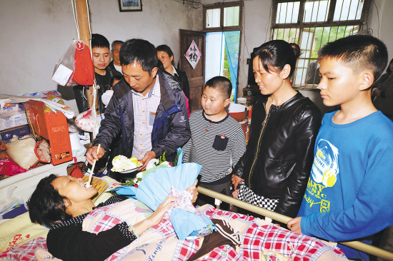 “很甜,是我这辈子吃过最甜的蛋糕了。”床上的任春爱流下了激动的泪水,她介绍说,家里从没这么热闹过,平时春节、清明节家里人也没到这么齐过。