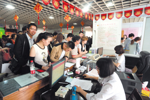 昨天上午一早,许多情侣就来到椒江办证中心婚姻登记处办理结婚手续。据了解,网上热传2014年5月20日谐音“爱你一世我爱你”,不少年轻人为了图个好彩头,也为了有个特殊纪念的日子,所以扎堆登记结婚。