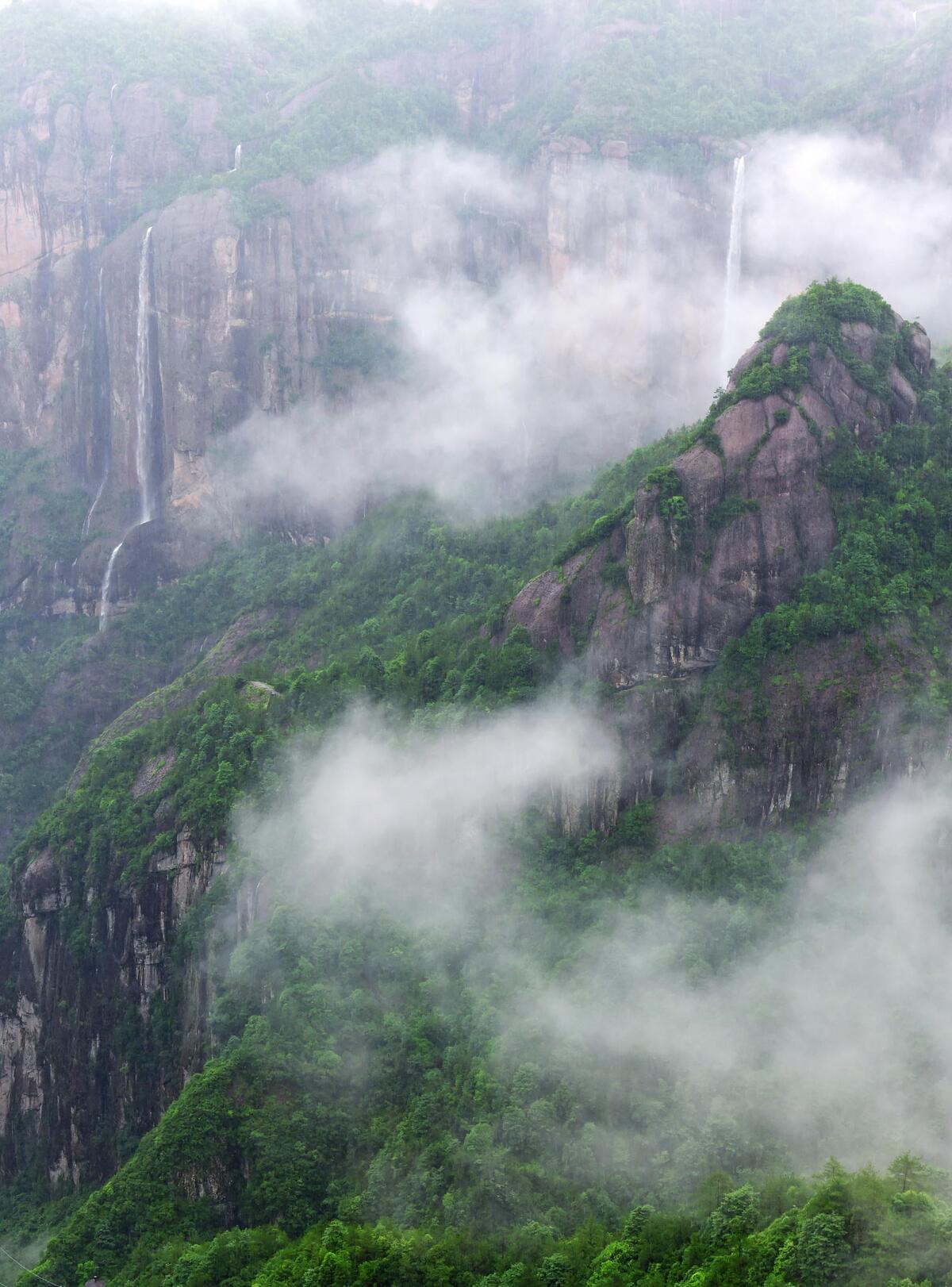 连日的降雨,给市民出行带来诸多不便,却给神仙居景区带来了别样的风景。因近日雨水连连,神仙居山间的山水由原来的小注水流汇成一个个小型瀑布,从山上飞流直下。雨水山水凝成的水柱好似从天外飞来,水流湍急,水花飞溅,引得不少游人伫足观赏。