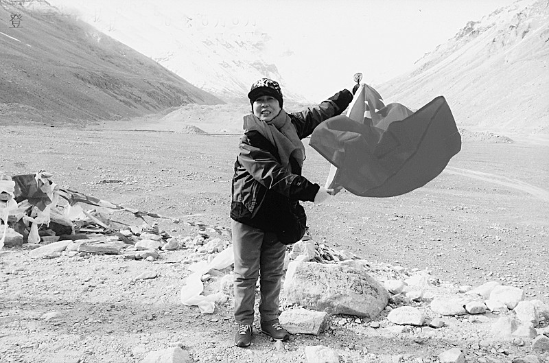 6月7日一早,韩新国等9人从定日县城出发,向珠峰大本营挺进。尽管珠峰大本营距离定日县城只有200米的高度,这一路他们却体会到了前所未有的艰辛。空气越来越稀薄,所有人的呼吸越来越急促,脚下似有千斤重,每前行一步都要付出很大的气力。韩雨仙的嘴唇越来越紫,脸色越来越青。同伴们使劲儿拉扯着她向前,小声地喊着加油。20分钟后,9个相互搀扶的聋哑人终于登上了海拔5200米的珠峰大本营。在他们身后,是壮丽的珠穆朗玛峰,那座8848.43米的高峰令他们向往。