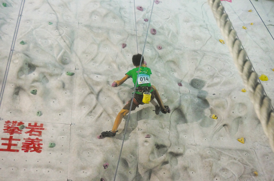陈勇辰在省第六届青少年攀岩锦标赛现场。资料图片
