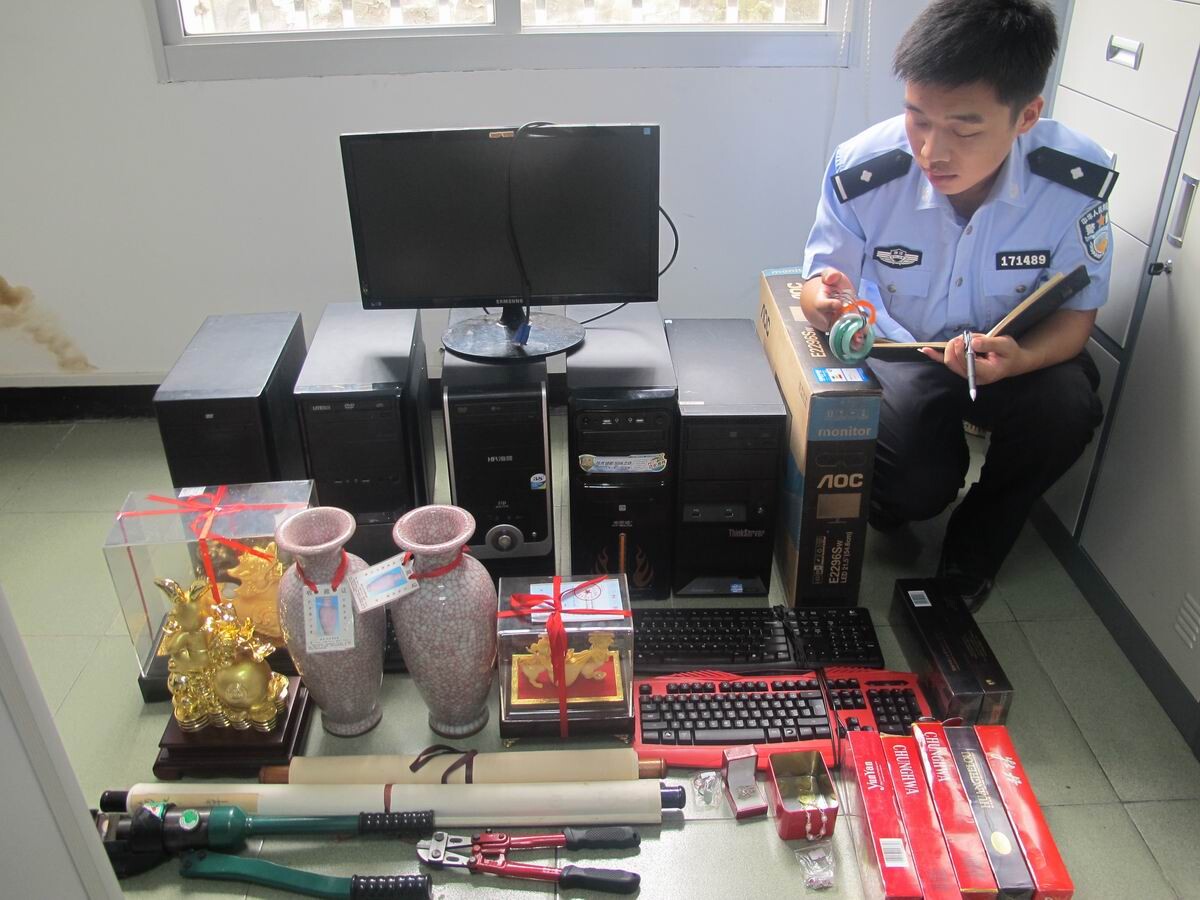 当天下午3时许,民警立即赶到北洋村的租住处,查获了电脑主机、电脑显示器、钻戒等赃物和一把作案工具液压剪。