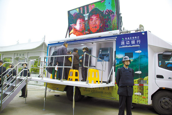 图为2月28日,临海农商银行在海拔400多米距市区40多公里的仙人桥山区启动“流动银行”,服务山区百姓,这也是台州首辆“流动银行”服务车。(资料图片)葛学琦摄