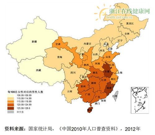 原标题: 男多女少,媳妇难找 浙江出生性别比排全国16