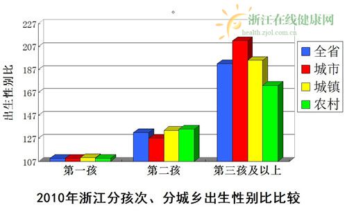 浙江省的数据也不容乐观,浙江省人口出生性别比偏高水平曾于上世纪90年代中期一度高居全国首位,2013年的全国调查数据显示浙江省人口出生性别已降为全国第16位。