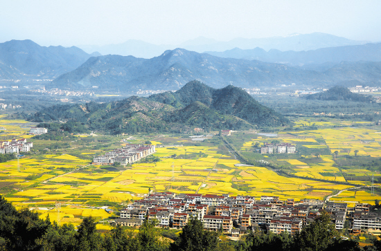 昨天,从括苍山半山腰望去,山脚下的括苍镇遍地金色,稻子又到了丰收的季节。