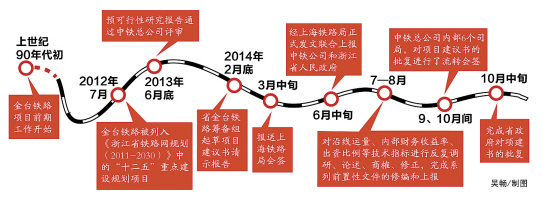 中国铁路总公司和浙江省人民政府联合批复新建金华至台州铁路项目建议书(铁总计统函[2014]1517号),这也意味着,金台铁路正式立项。该项目预计12月初进行可行性研究报告的评审,并争取明年下半年实现全线开工建设。