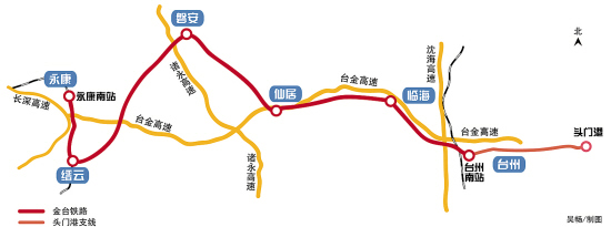 线路自金温新双线永康南站引出,向东经金华永康、丽水缙云,金华磐安和台州仙居、临海,最后客货线分别接入甬台温铁路台州站和台州南站,配套建设头门港铁路支线。