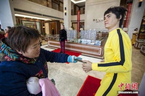 近日,第一届“国际名人蜡像展”在河南驻马店市展出,包括范冰冰、李小龙、刘德华、林志玲等人在内,许多演艺明星的蜡像都被摆出来让人观赏。