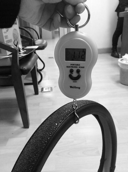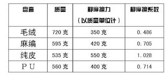 记者按照网上流传的一种静摩擦系数计算法进行了一番实验。(注:本次小实验中的方向盘套内层与方向盘摩擦力被认为是无限大的,也就是说不考虑方向盘套与方向盘的打滑问题;另外,实验测得的是方向盘套与漆木桌面之间的摩擦系数,这与方向盘套与人手皮肤之间的摩擦系数是有区别的。实验数据仅作参考。)