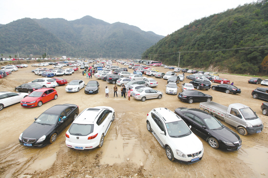 为了解决游客停车问题,临海有关部门在这里特地建了一个大型停车场。