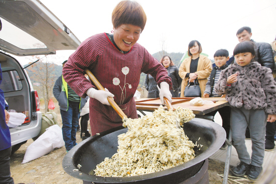 现做的炒米糖很受游客喜爱。