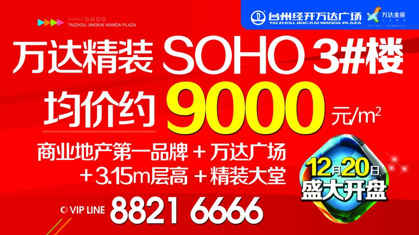 万达精装SOHO3#楼12月20日盛大开盘,均价仅约9000元/㎡,即日抢筹!存一送一,大客户优先,接受拼团!
