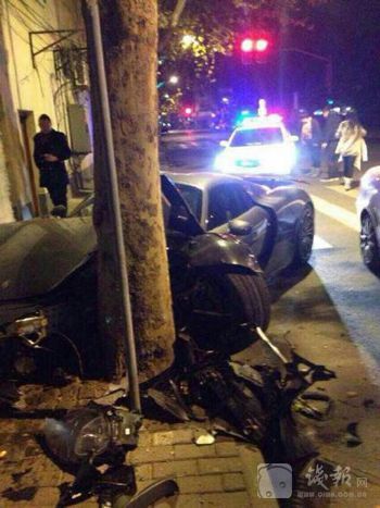 今天(12月18日)凌晨,一辆价值千万的保时捷超跑在上海市中心新天地附近突然失控,撞向行道树后严重损毁。