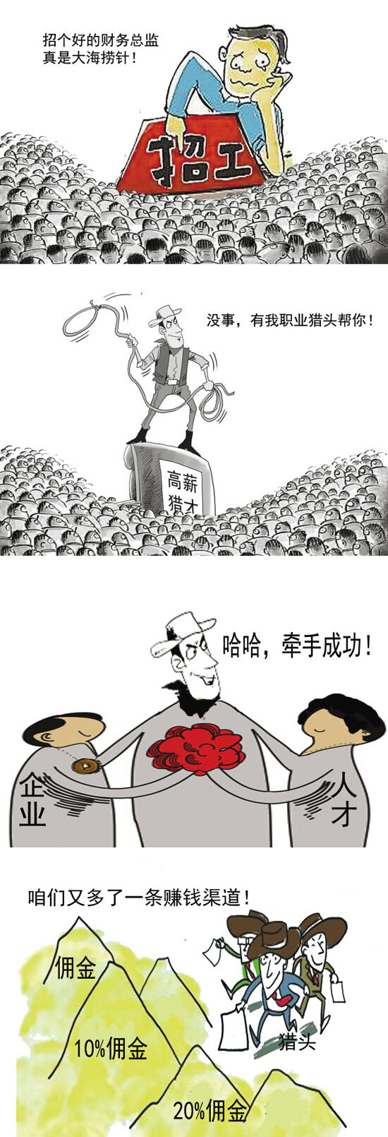 “猎头其实就是人才市场上的媒婆,找到供求方,将双方联系在一起。”杨仙花介绍,如果找到合适的候选人,猎头与公司接洽三次基本就能敲定了,“一次是一起谈谈对用人具体的要求,第二次带候选人过去面试,到了第三次就能办理入职手续了。”