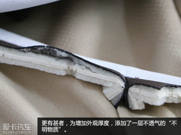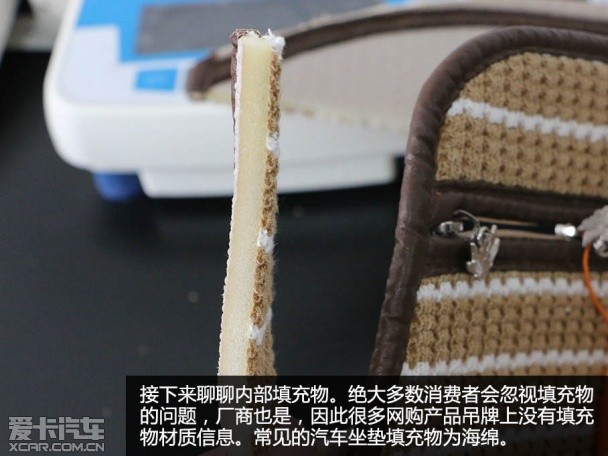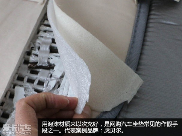众所周知,网购作假的惯用手法是“金玉其外,败絮其中”,外形相似但是材质却千差万别。汽车坐垫的主要材质可以分为2部分:表面材料和填充物质两大部分。