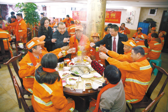 “环卫工人是城市的美容师,他们来自五湖四海,为城市建设出了一份力,我们邀请环卫工人吃顿饭,给他们拜个早年。”李先伦说。