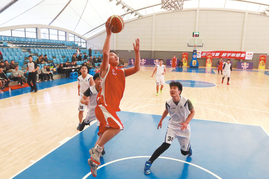 12月29日,市第二届企业职工运动会篮球决赛在台州学院篮球馆举行,仙琚制药代表队战胜绿田股份代表队,夺得冠军。至此,市第二届企业职工运动会顺利闭幕。该运动会由市体育局和市总工会主办,每四年举办一次,比赛项目包括篮球、乒乓球、拔河等7个项目,全市27家企业共2200多名职工参加。图为篮球赛决赛现场。