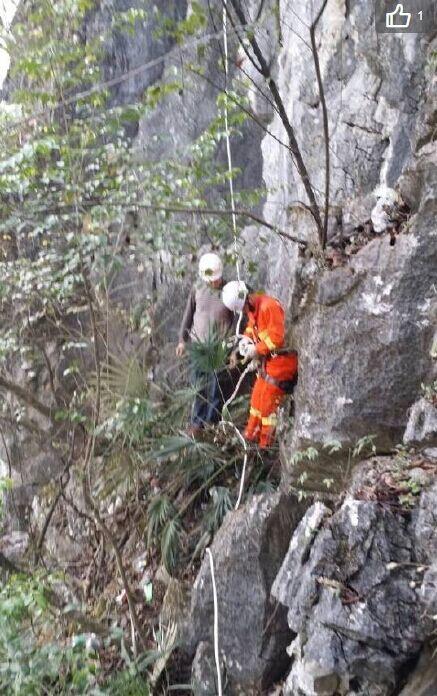男子为捡钱包被困约200米高山崖