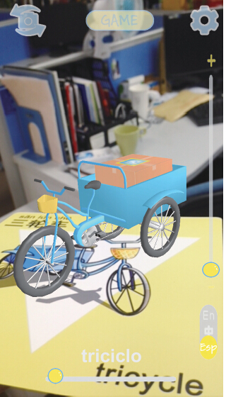 记者昨天在手机里安装了这款“卡萌”软件,点开应用图标,手机屏幕上出现了类似照相功能的界面。将摄像头对准一张画有狮子的卡片,手机屏幕里出现了一头3D形态的卡通狮子,一头浓密的鬃毛逼真生动,时不时摆弄下尾巴很是可爱。在屏幕上点击狮子图像,会发出“狮子”的标准中文发音,通过切换,还能听到英语、西班牙语等版本的发音。通过转动、晃动手中的卡片,立于卡片上的3D影像也会随之晃动、全方位转动。