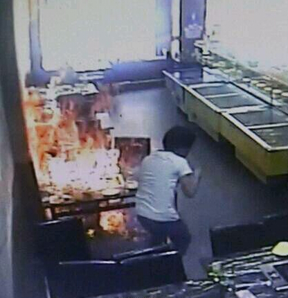 监控视频显示,小倩瞬间就被大火包围住了,其他客人一看有人被火烧伤,马上就脱下了自己的衣服来扑火。火虽然很快就灭了,但小倩全身已被烧成了焦黑色。