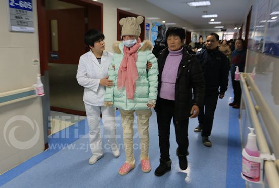 小倩今天出院,得知这个消息后,几乎全杭州的媒体都来探望她。小姑娘戴着米老鼠造型的针织棉帽站在镜头前,向大家问好,还向主治医生王帆和护士送了一面“救死扶伤”的锦旗。