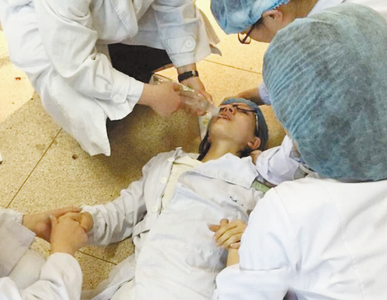 一刹那,小徐突然感觉两眼一黑,身体瘫软了下去,倒在抢救室里。一旁的护士见状急忙对她进行抢救,产科主任杨幼林也匆匆赶来,她判断小徐可能是因为低血糖晕倒的,并无大碍,于是马上给她喂了糖水。
