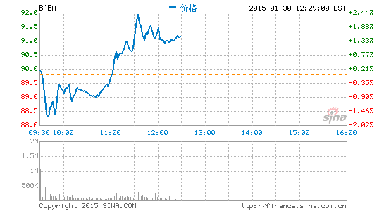 北京时间1月31日凌晨消息,阿里巴巴(91.15, 1.34, 1.49%)在美上市股(BABA)午盘由跌转升,结束了此前两天连续重跌的势头,稍早时投资者获悉这家电商巨头与中国工商监管机构和解的利好消息。截至北京时间周六凌晨1:17,阿里的股票涨1.36%,报91.03美元,稍早时该股一度跌至88.11美元。