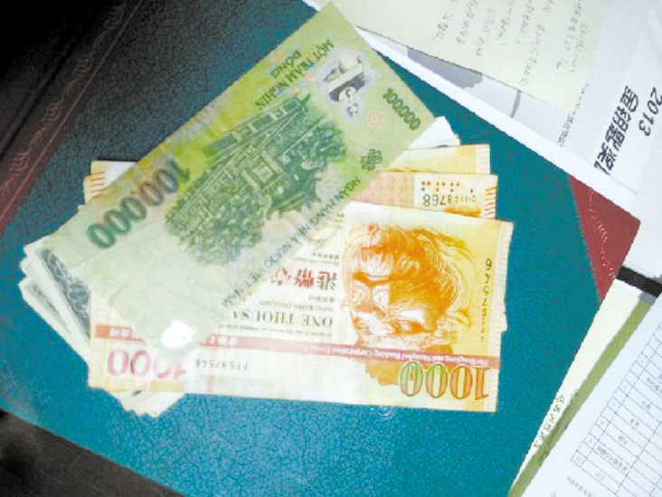 回到办公室,陈连庆上网查了,绿色的是越南盾,红色的是港币。这些钱虽然面值有十来万,但折合人民币只有约3700元。