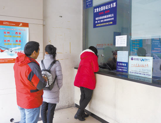 王远桐就是其中一个。她是台州学院大四学生,在市区一家外贸公司实习,两个月前铆足了劲才在网上抢到回重庆老家的车票,这几天,她过来取票准备回家。