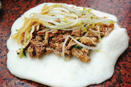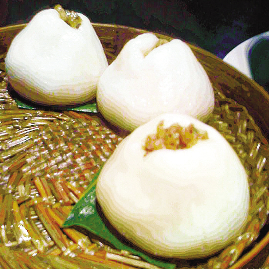炊圆的馅料有两种,一种是里面包进用葱、姜、酒调好的肉馅,跟包子馅料差不多;另一种则是随季节性和口味的不同加入茭白、虾皮、豆腐干、萝卜丝等等。一口咬下去,软软的糯米夹杂着浓郁的肉汁,很好吃很美味。