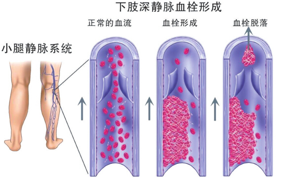下肢静脉血栓的致病原因是什么呢?陈聪说,这和血流滞缓、血液高凝及血管壁损伤三个因素有关。符合两到三个因素,患病的可能性就比较大。“长时间保持一个姿势,腿部静脉血流会不畅甚至淤阻;还有女生穿高跟鞋,小腿肌肉不收缩,静脉血流缓慢,易形成血栓。至于血液高凝,说的是血液黏稠度变高。血管壁损伤多为血管受外伤。”