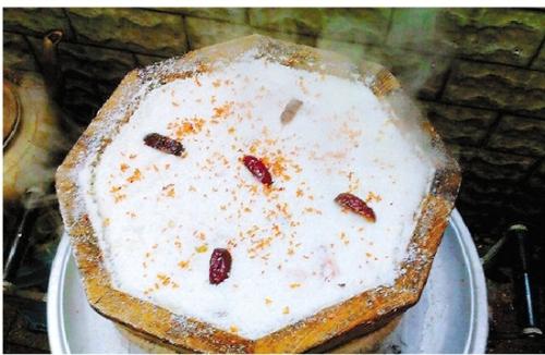 在桐乡,春节期间走亲访友时,一些长辈都会先给晚辈泡一杯锅巴糖水,它的新年寓意就是:甜甜蜜蜜。