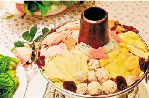 过去一般人家家里都会备个暖锅(火锅),平日里不用,只在除夕夜端出来。吃“暖锅”也是为了讨个“好彩头”,“有着团团圆圆,红红火火,暖暖和和的意思。”锅里一般放三鲜。所谓“三鲜”就是肉丸、蛋饺和熏鱼。蛋饺形如元宝,有“大吉大利、来年发财”之意。