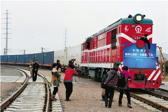 欧洲商品首次通过铁路运输直接运到义乌,标志着目前世界上线路最长、途经国家最多的国际铁路货运班列——“义新欧”班列首次实现往返开行。