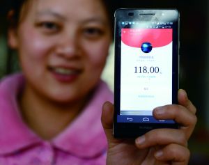 一位杭州市民在展示春节期间她手机收到的一个微信红包。新华社发