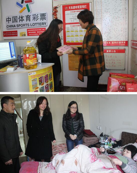 2月15日,嘉兴市体彩中心主任王立群来到平湖45051体彩销售网点,为带病坚持工作的业主韩大姐送去了2000元的慰问金和米、油等生活用品。业主韩大姐是东北人,在平湖开体彩销售网点近5年了,最近两年来她和丈夫相继生病,生活陷入了窘况。虽然一次只能站着坚持销售2个小时,但她依然和老公轮换着坚守着这家体彩销售网点。收到新年礼物,她开心地说着谢谢,表示会继续销售体育彩票,今年过年还打算在闹市区卖顶呱刮彩票增加点收入。