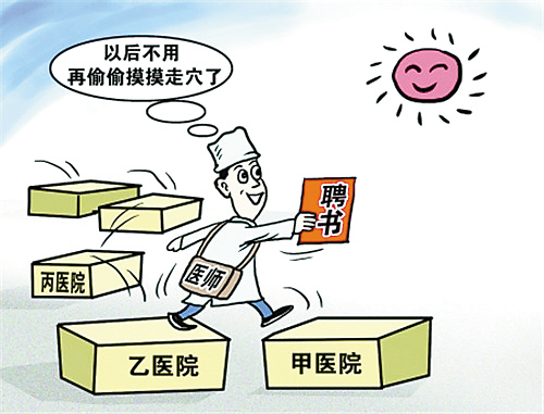 “简单点说,不管原单位院长同不同意,只要医生有水平,有人愿意请去坐诊,就可以很潇洒的走人。”胡富宇说,“而且办理的手续也很简单,只要到多点执业地点的主管卫生(计生)部门办理多点执业登记手续即可。”