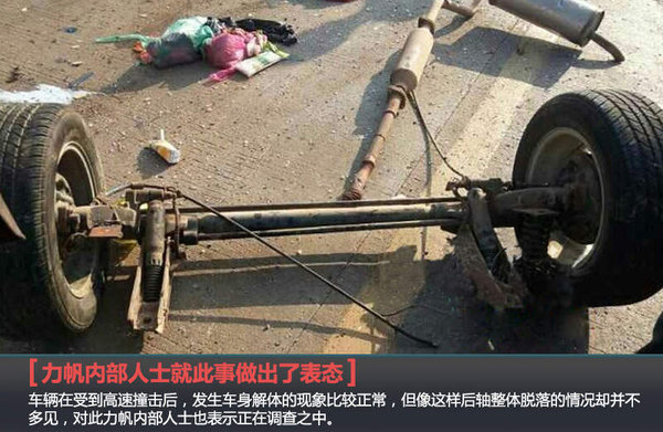原标题: 力帆“掉轮门” 高速车祸-两后轮整体脱落