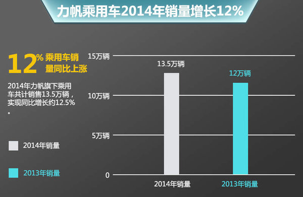 不过多起事故的发生并没有影响到力帆汽车的市场表现,相反的,凭借着小型SUV力帆X60的持续热销带动了企业整体销量的提升。据力帆股份最新发布的一份产销数据显示,力帆在2014年共计销售乘用车13.5万辆,同比增长约12.5%。虽然距离去年年初时制定的20万辆的预期值仍有不小差距,但能在自主品牌整体遇冷的不利局面下取得如此成绩依然值得肯定。