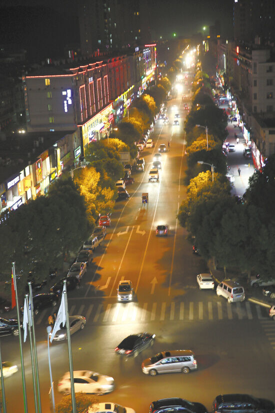 夜幕下的台州经济开发区康平路依旧车水马龙,两旁店铺林立。