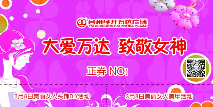 大爱万达 致敬女神——3月8日万达广场“女神节”专场活动套票开抢啦!