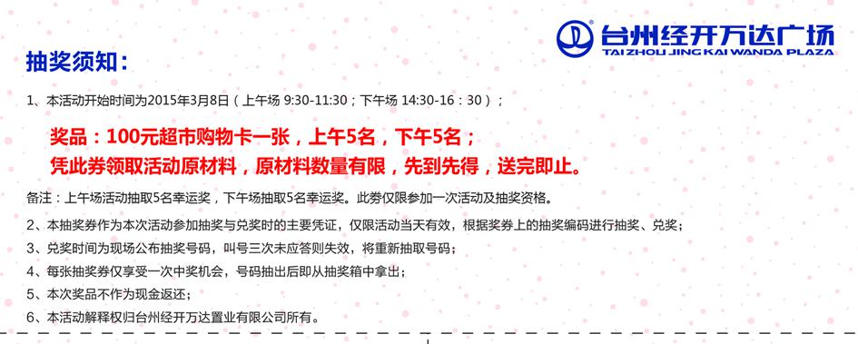 ②活动共抽出10位幸运朋友,获奖的小伙伴们,可凭获奖回执(如下图)至台州经开万达广场营销中心直接领取活动套票一张!