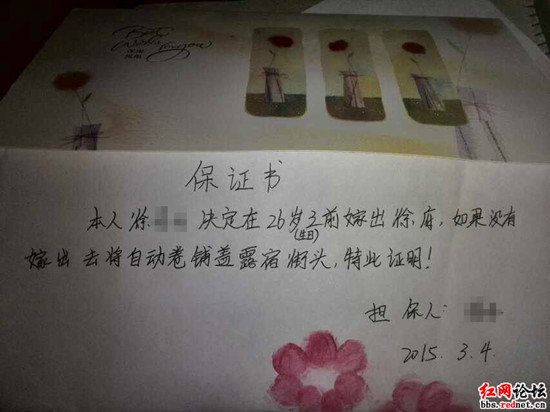 原标题: 相亲爽约美女被逼写保证书 嫁不出去就露宿街头